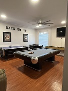 9ft competition regulation size pool table, a 54 inch foosball table, a shuffleboard table,