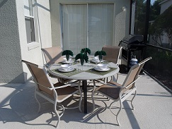 The large covered lanai overlooks a private sparkling 28ft pool with fan sprays & streamers to add to the fun. There is also a large jacuzzi /spa with waterfall, underwater mood lighting, & has a fitted child safety fence.