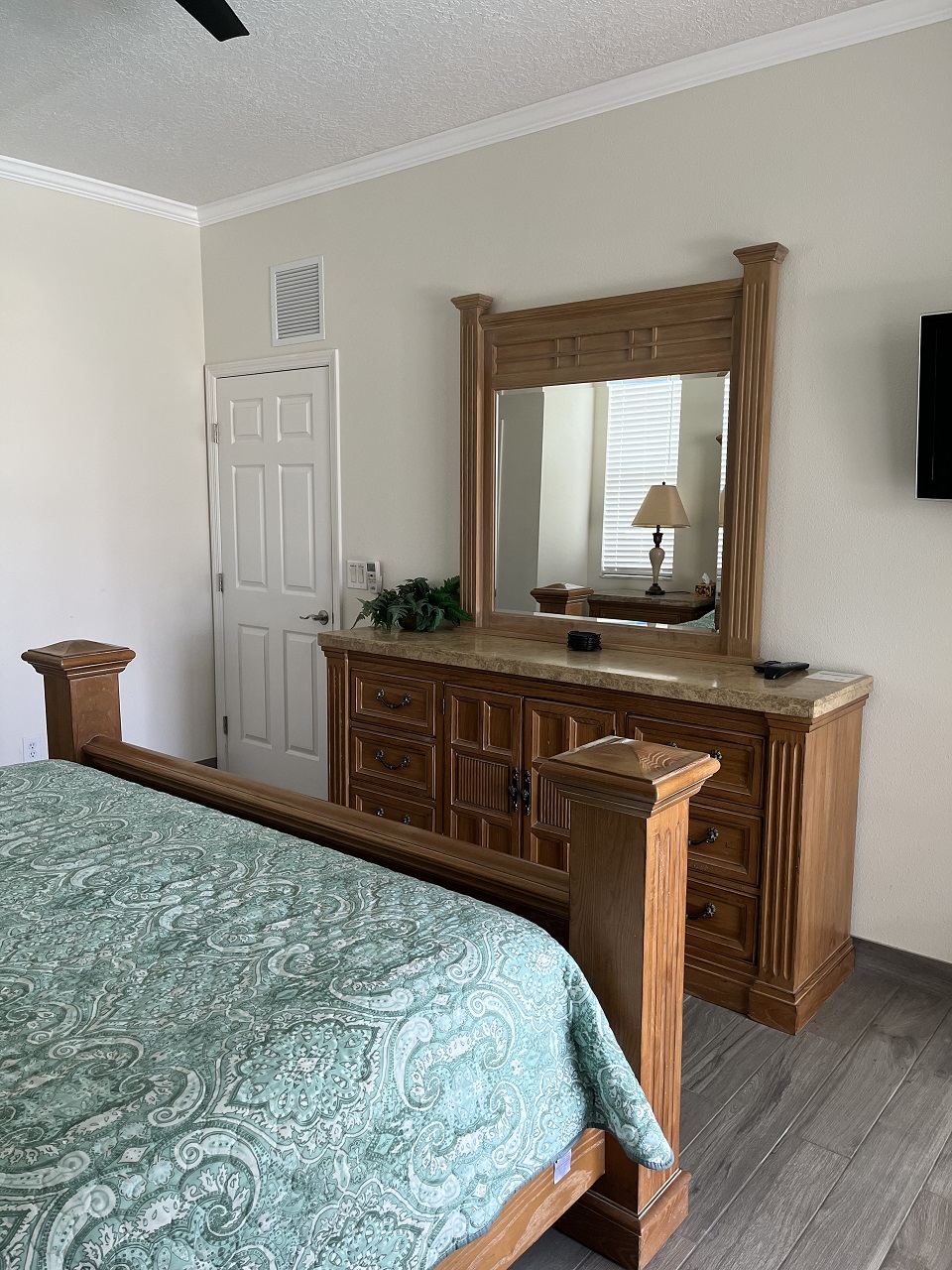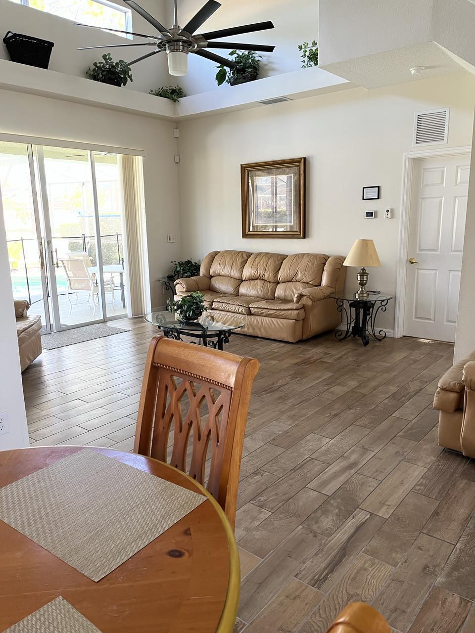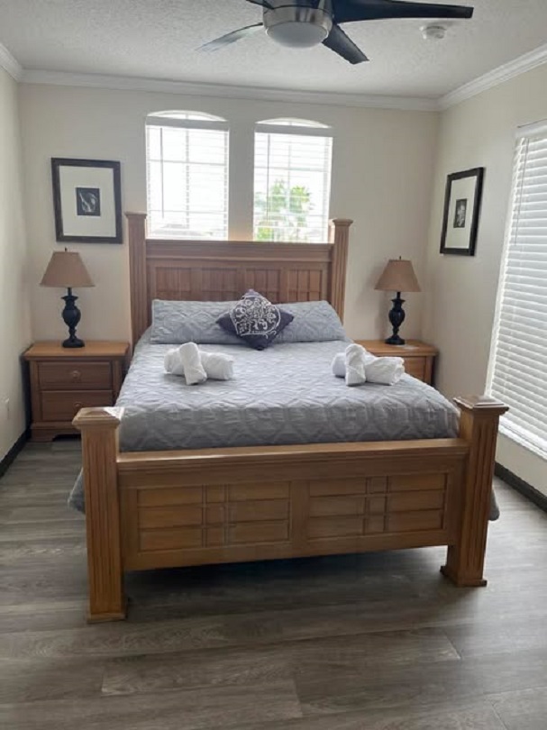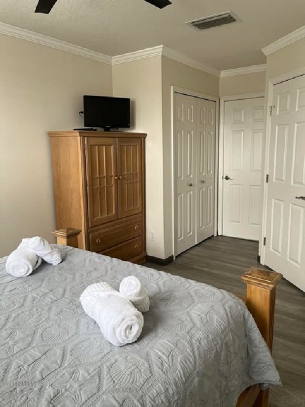 .The room has direct access to the covered lanai/pool decking through a patio door.