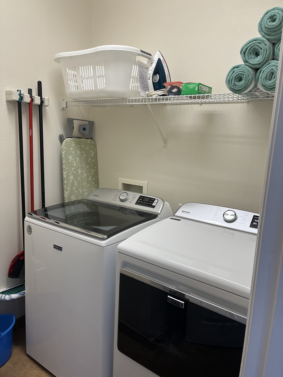 Separate indoor Utility room with high end Maytag washing machine and gas tumble-dryer.