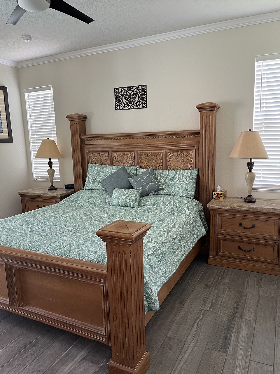 Converted from the former Den into a Master bedroom with a solid wood American queen-sized bedroom suite