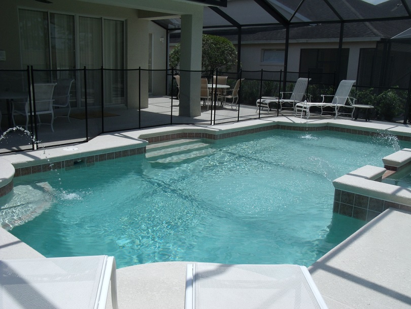 The 1200 sq ft pool deck is fitted with a removable Child safety fence to keep the little ones safe.